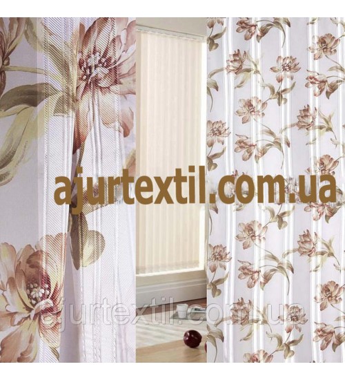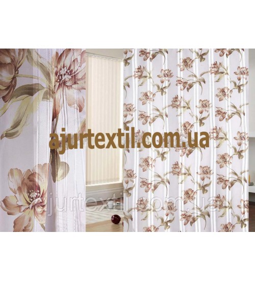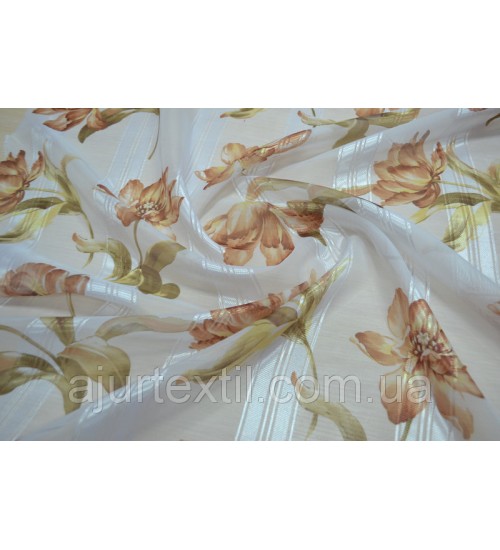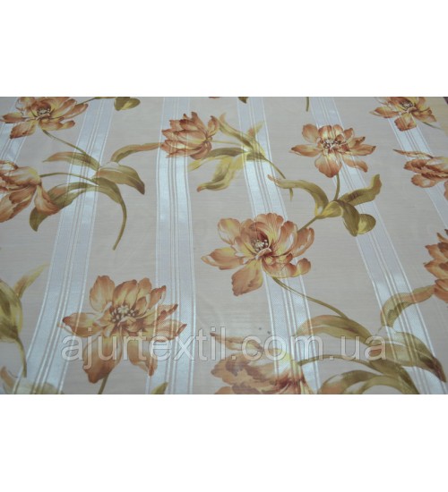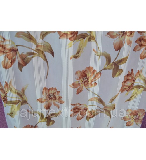 Тюль печать "Атласная розочка " беж