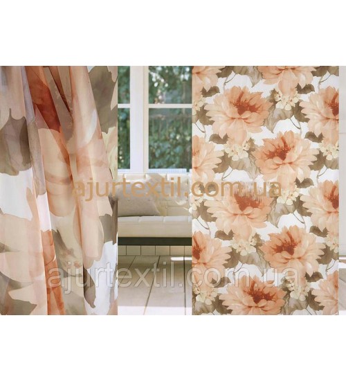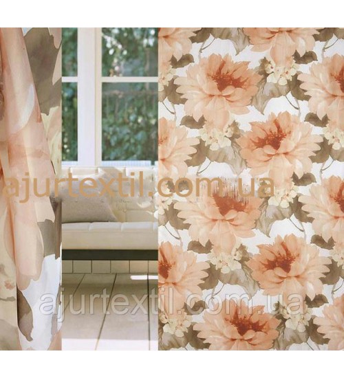 Вуаль печать высота 2,8, набирается ширина. Тюль имеет красивые большие цветы, размер 0,40 см.