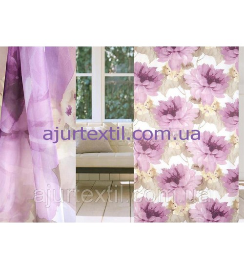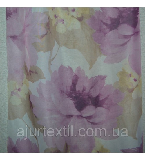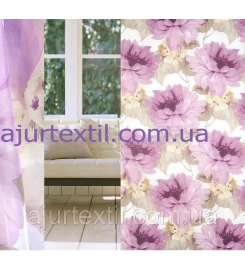 Тюль вуаль . Новинка.Цветы очень большие. Размер цветка 0,40 см. Цвет нежно сиренево фиолетовый. Тюль смотрится очень красиво. Высота тюли 2,8, набирается ширина.