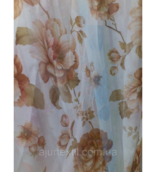 Вуаль-мягкая, легкая ткань. Нежность такой тюли придаст интерьеру уют и нежность. На тюли присутствуют большие и маленькие пионы.