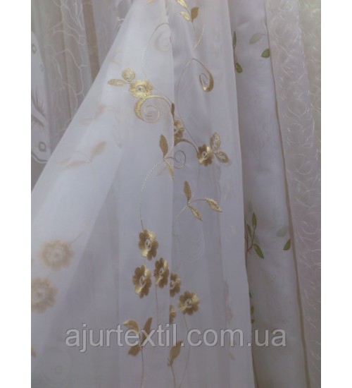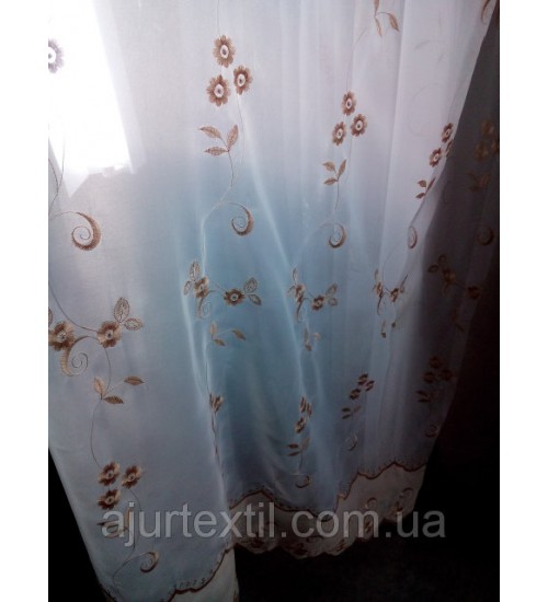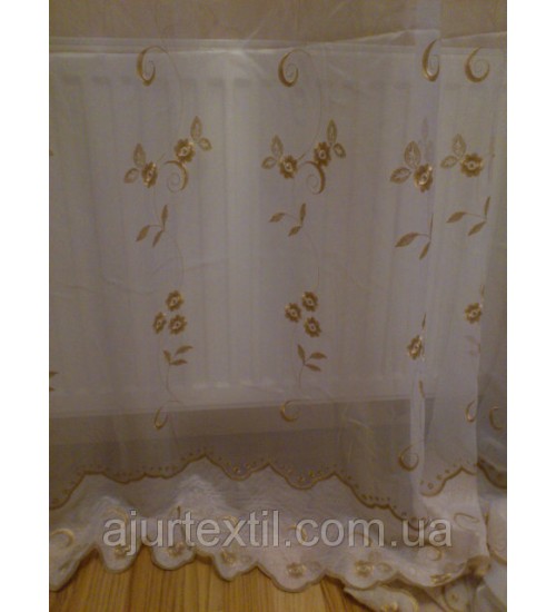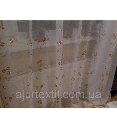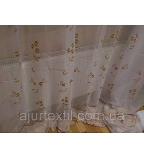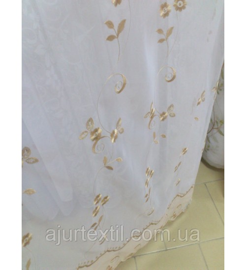 Вуаль, Высота 2,8, набирается ширина. Фон белый, вышивка бежевая. Низ очень красиво обработан. Вышивка по тюли идет на высоту (от низа до конца вышивки) 2,15. Тюль имеет очень нежный и красивый вид.