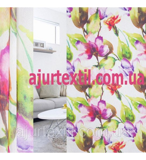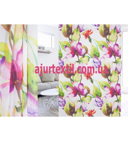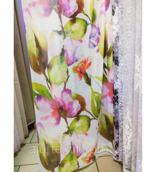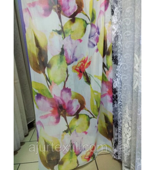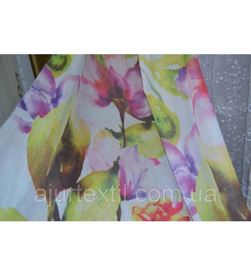 Тюль лен "Акварельная веточка" Тюль лен "Акварельная веточка" Тюль лен "Акварельная веточка"