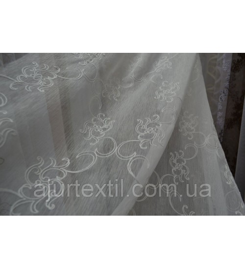 Тюль новинка. Высота 2,95, набирается ширина. Ткань кристалон с ниточками льна. Тюль мягкая, легко подается драпировке. В уходе такие тюли не привередливые. Тюль белого цвета. По тюли на высоту 2,45 идет вышивка.