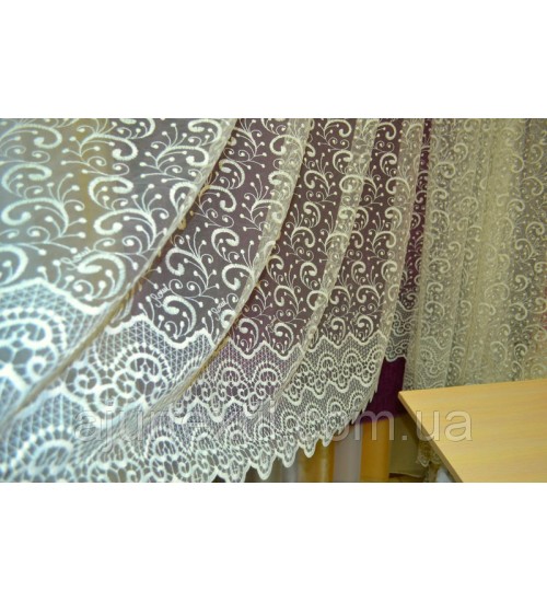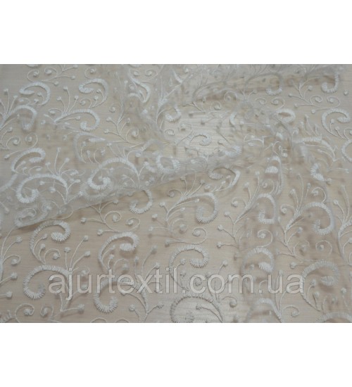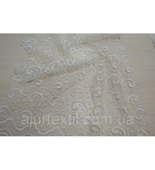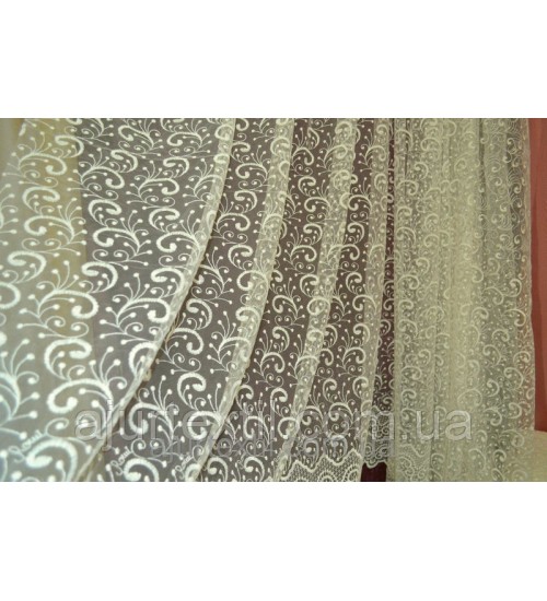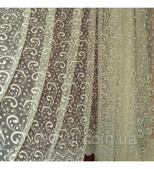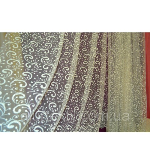 Шикарная, благородная тюль для украшения нашего окна и интерьера. Вышивка имеет очень красивый вид. Вышивка плотная, качественная. Тюль имеет нежно кремово -молочный цвет.