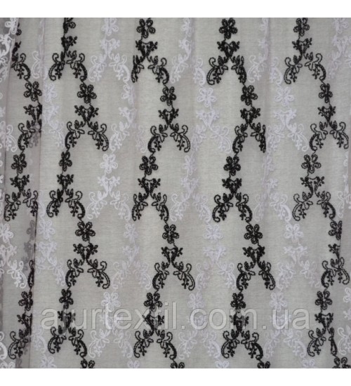 Цвет тюли ― одна веточка идет черная, вторая серо-белая( цвет расположен мраморно) Такую тюль еще называют вышивка 3D- так как вышивка объемная. Тюль в живую смотрится еще лучше чем на фото.