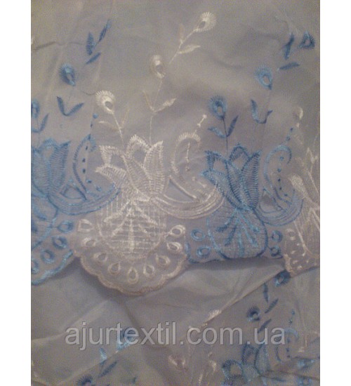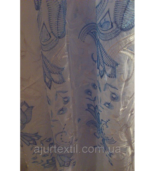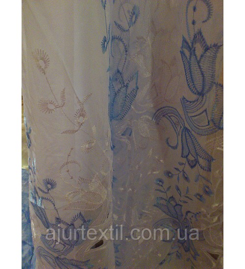 Тюль шифон. Высота 2,8 набирается ширина. В верху с ламбрекеном. Вышивка идет посредине, в низу и вверху на ламбрекене. Вышивка широкая.
