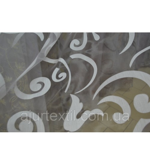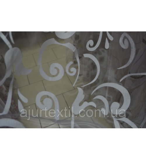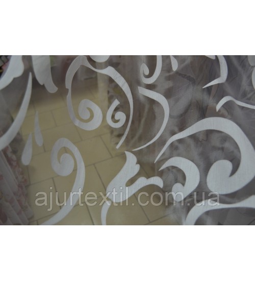 Деворе — ткань с рисунком полученным выжиганием части волокон. Высота 2,8, набирается ширина. Тюль смотрится очень красиво, ткань имеет перелив.
