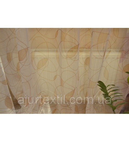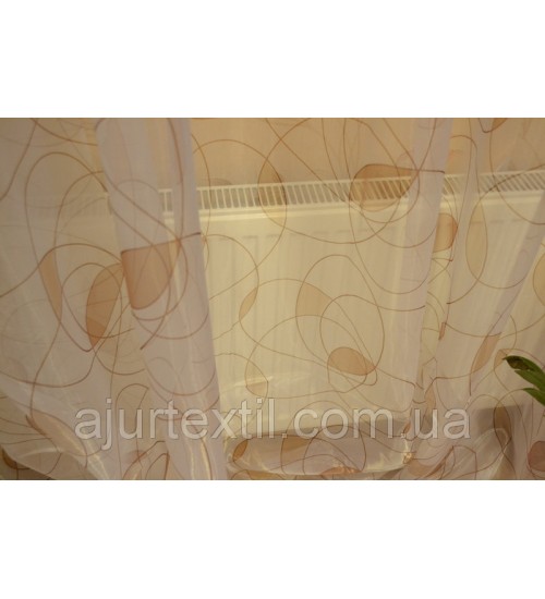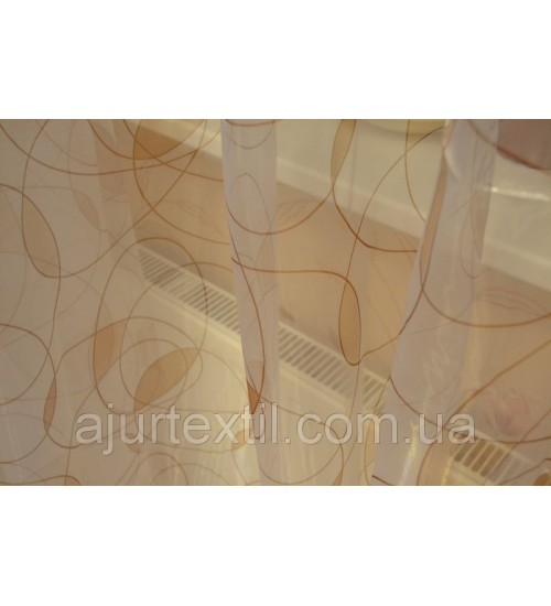 Тюль очень красивая и интересная. Фон прозрачный, завиточки коричнево бежевые.