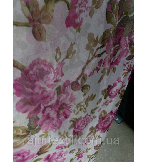 Тюль микровуаль печать "Розы нежность"