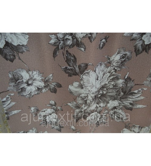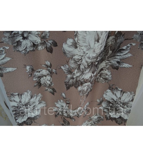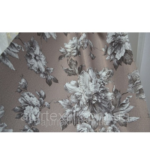 Штора блэкаут «Бругман» имеет высоту 2,8, набирается ширина. Портьера не тяжелая, при этом имеет свойство светонепроницаемости так как состоит с трехслойной ткани. По всей шторе красиво расположены шикарные цветы которые имеют размеры 0,25 см, 0,10 см, 0,15 см Рисунок имеет оттенок светло и темно серого и коричневого цвета цвета.Серый цвет он как будто бело серый.Первое фото хорошо передает оттенок бежевого фона и цветов бело серых