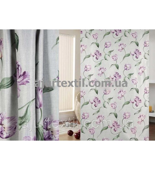 Портьера имеет свойство светонепроницаемости за счет нитей блэкаута в ткани этой шторы. Штора легко ложится в складку, так как ткань этой занавески мягкая. За счет расцветки на шторе она имеет вид очень уютной, теплой портьеры, которая как будто излучает летнее тепло. Фон шторы светло нежно серый, цветы на шторе красиво фиолетовые, листочки зеленого цвета ( что как бы освежает шторку) Штора изысканная, богатая и в то же время стильная. Под такую модель можно подобрать тюль компаньон или однотонную тюль. Наши менеджеры с радость помогут сделать Вам правильный выбор. Рисунок на шторе печатный, такой же как и занавеске «Переплетение цветов» 08.