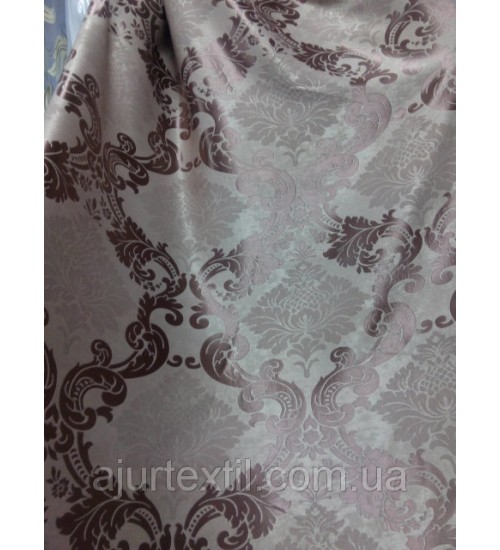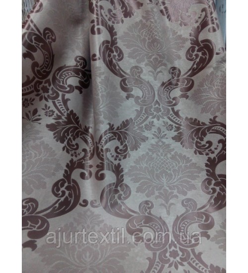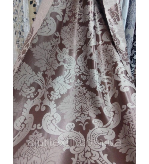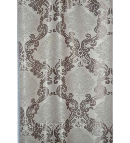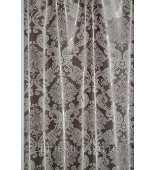 Первая сторона шторы светло коричневая, вышивка дамаск коричневая.