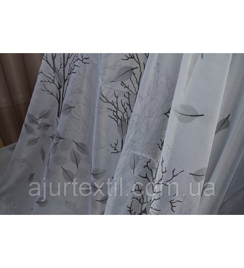 Ткань вуаль, высота 2.8 м, метод нанесения рисунка - печать. Очень красивая и оригинальная тюль. Мягкая,рисунок черный с серым. Вы останетесь довольны покупкой!
