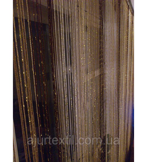 Ширина по карнизу 3 метра, высота 3 метра. Подходит для карниза шириной от 1,5 метра до 3 метров. Идеально смотрится на карниза шириной 2,5 метра. Цвет нити- коричневый,молочный,золото,светлый беж. Нити не темные