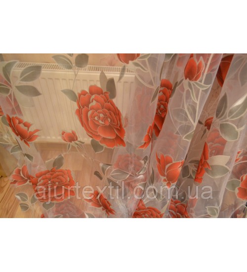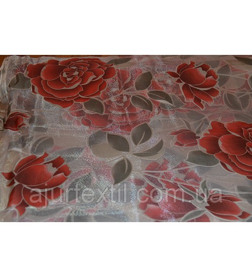 Тюль органза деворе "Роза" красная Тюль органза деворе "Роза" красная