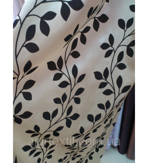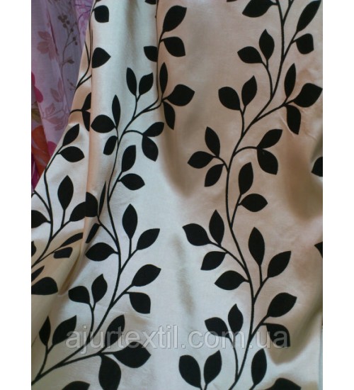Штора легкая высота 2,8, набирается ширина. Метод нанесения рисунка флок. Фон шторки бежево -золотый. Штора легкая. Такая ткань очень хорошо подойдет для декорации окон квартир, ресторанов, баров. Ткань- тафта