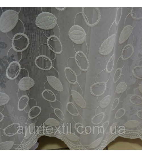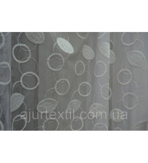 Тюль сетка, высота 2,8. набирается ширина. Отличная тюль для уютного интерьера. Тюль легко пропускает воздух, мягкая- хорошо подается драпировке. Производитель Турция. Тюль вышита красивыми колечками, немного имеет перелив, так как в нити вшита люрексовая нить.