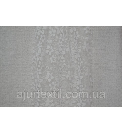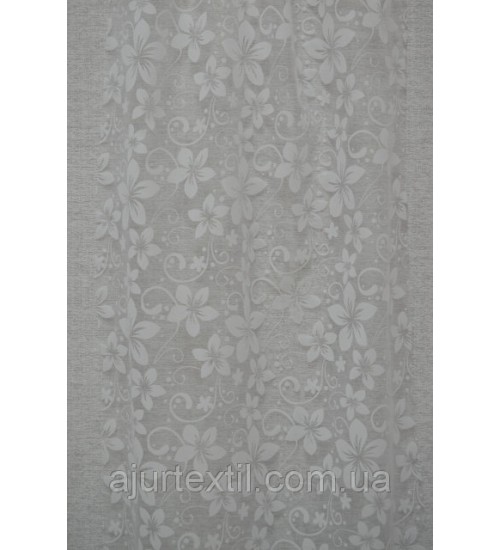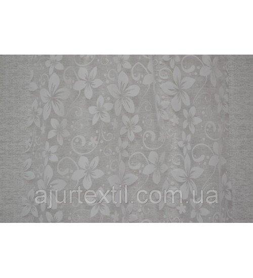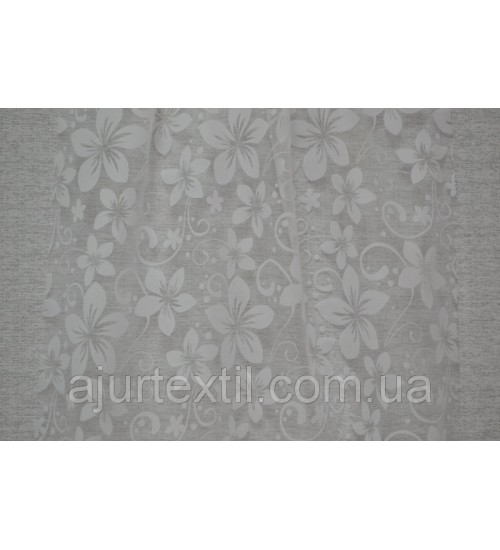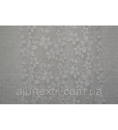 Фон тюли прозрачный- белый. Цветы белые. Рисунок на тюли покрыт бархатным напылением. За счет такого рисунка тюль выглядеть изумительно красивой и нежной. Комната с такой тюлю станет намного уютней и теплей выглядеть.