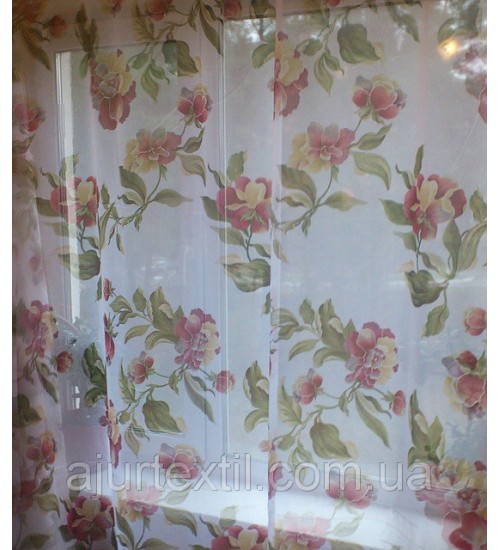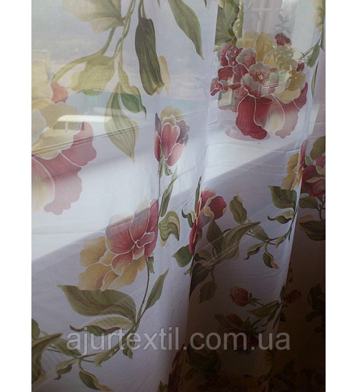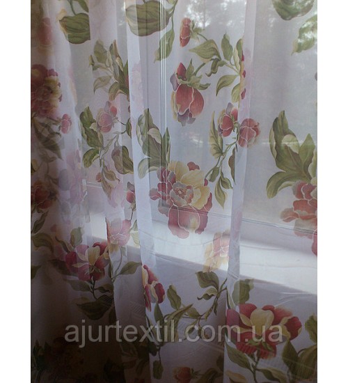 Ткань вуаль, высота 2.8 м, метод нанесения рисунка ― печать,фон белый Вуаль очень красивая,воздушная ткань.