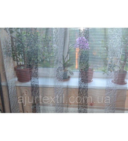 Высота тюли 2,8, набирается ширина. Ткань Елит . Такая тюль сделает комнату изысканой, современной,стильной. Тюль просто супер! Фон тюли черный с серым отливом