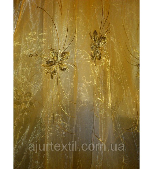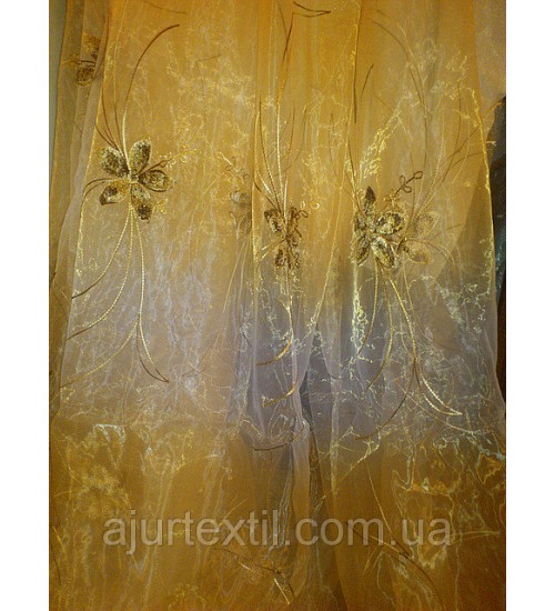 Тюль органза. высота 2,8,набирается ширина. Исполнение рисунка вышивка с махровыми цветами.