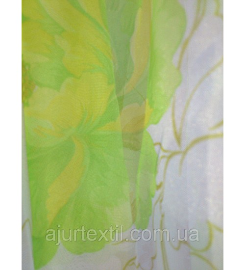 Тюль печать "Цветы" салатовый
